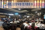 한민일보 서울포커스 김은금 기자 | 재경고성향우회(회장 김영수)는 12월 11일, 서울시 성동구 레노스블랑쉬 연회장에서 2025년 제72차 정기총회 및 고성인의 밤 행사를 개최했다. 1부에서는 내빈 및 임원소개, 고향사랑기부금 기탁식, 감사패 및 공로패 수여, 2025년 결산보고 및 2026년 활동계획 보고 순으로 진행했다. 재경고성향우회 회장 이·취임식도 함께 어우러져 김영수 재경고성향우회장이 연임했다. 특히, 재경고성향우회 회원 일동이 고향사랑기부금 300만 원을 기탁하여 자리를 빛냈다. 재경고성향우회를 위해 수고한 이용찬 자문위원, 고영양 회화면 사무국장, 백현순 여성국장이 감사패를 받았으며, 2부에서는 고향의 정을 듬뿍 나누는 만찬을 함께 하며 향우 간 화합하는 즐거운 시간을 보냈다. 김영수 회장은 “저를 신임하고 연임해 주신 향우 회원 분들께 늘 감사드리고, 저희 회원 일동이 기탁한 고향사랑기부금으로 고향 고성군의 복리 증진을 위해 살뜰히 사용해 달라”라고 말했다. 류해석 부군수는 “재경고성향우회 정기총회 개최를 축하드리며, 재경고성향우회의 고향사랑과 성원에 깊이 감사드린다”라며, “앞으로