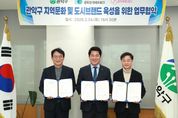 한민일보 서울포커스 곽중희 기자 | 관악구가 정부의 주요 국정 목표인 ‘문화강국’ 기조에 발맞춰 ‘문화가 강한 지역 만들기’에 앞장선다. 구는 지난 24일 관악문화재단, 사단법인 문화강국네트워크와 함께 ‘관악구 지역문화 및 도시브랜드 육성을 위한 3자 간 업무협약(MOU)’을 체결했다. 사단법인 문화강국네트워크(이사장 이우종)는 대한민국 문화강국 비전 실현을 목표로 지역문화 진흥과 전문적인 문화 정책 연구 등을 활발히 전개하고 있는 민간 단체다. 이번 협약을 통해 세 기관은 관악구의 지역문화 발전과 ‘대한민국 청년수도 관악’ 도시브랜드 육성 기여에 상호 협력하게 된다. 주요 협력 사항은 ▲지역문화 정책의 연구 및 개발 ▲지역문화 진흥 및 도시브랜드 육성 사업 ▲지역 역사 문화유산 개발 사업 등이다. 구 관계자는 “관악구의 행정력, 관악문화재단의 현장 친화적 실행력, 문화강국네트워크의 전문적 정책 연구 역량을 결합해 시너지 효과를 낼 것”이라고 설명했다. 한편 구는 이번 협약을 기반으로 ‘도시브랜드 육성’과 ‘역사문화유산 개발’ 사업을 중점 추진한다는 방침이다.