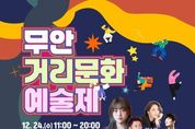 한민일보 서울포커스 박용남 기자 | 전남 무안군은 오는 24일 남악 중앙공원 일원에서 무안거리문화예술제를 개최한다. 무안거리문화예술제는 ‘문화 캔버스 – 도시, 예술로 물들다’ 라는 주제로 기존의 음악 공연 중심 거리예술에서 벗어나 다양한 분야의 지역예술가와 군민이 함께 어우러지는 참여형 문화예술제로 마련됐다. 일상 속 거리 공간을 예술로 채워 군민들에게 색다른 문화 향유 기회를 제공하는 것이 이번 행사의 가장 큰 특징이다. ▲무안군립국악원과 무안국악협회가 선보이는 ‘국악한마당’을 시작으로 ▲관내 청소년이 꾸미는 ‘꿈나무 콘서트’ ▲어린이들을 위한 ‘책 읽어주는 산타할머니’ ▲가족 단위 관람객이 함께 즐길 수 있는 ‘밖으로 나온 영화관’ 등 남녀노소 모두가 즐길 수 있는 프로그램으로 풍성하게 구성됐다. 또한 가수 경서, 정재욱과 뮤지컬 가수 루이스초이, 박소연 등이 출연하는 뮤직콘서트가 펼쳐져 연말 분위기를 한층 고조시킬 예정이다. 그 밖에도 관내 작가들과 함께하는 컵·접시 만들기, 크리스마스 리스 만들기, 캘리그라피 달력만들기, 솟대 만들기 등 다양한 체험 프로그램이 운영되며, 목포대학교 미술학과