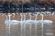 한민일보 서울포커스 김다남 기자 | 충북 괴산 달천강에 내려앉은 ‘겨울 진객’… 큰고니 가족의 평화로운 외출청정 괴산의 생태 지표로 주목영하권 추위가 몰아친 충북 괴산군 달천강변에 반가운 손님이 찾아왔다. 멸종위기 야생생물 2급이자 천연기념물로 지정된 ‘큰고니’ 가족이 그 주인공이다. 21일 오전 괴산군 달천강 이탄교 인근에서는 성조와 어린 새를 포함한 일곱 마리의 큰고니 무리가 한꺼번에 관찰돼 지역 주민과 탐조가들의 눈길을 사로잡고 있다. 흔히 ‘백조’라 불리는 큰고니는 겨울철 한반도를 찾는 대표적인 겨울 철새로 수질이 깨끗하고 먹이가 풍부하며 외부 교란이 적은 곳에만 머무는 까다로운 습성을 지녔다. 즉, 달천강 일대가 외부 교란이 적고 생태적으로 안정적인 환경을 유지하고 있다는 지표인 셈이다. 보통 화진포, 낙동강, 금강 등 대규모 하구나 호수를 주요 서식지로 삼는 큰고니가 내륙인 괴산 달천강에 그것도 7마리라는 대가족 단위로 모습을 드러낸 것은 매우 이례적인 일로 평가된다. 현장에서 포착된 큰고니들은 달천강 수면 위를 유유히 헤엄치며 먹이 활동에 여념이 없는 모습이다.