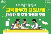한민일보 서울포커스 임광현 기자 | 순천시가 가정형편 등으로 학원 수강이 어려운 취약계층 가정 학생들에게 수강료를 지원하는 교육바우처 사업을 시행한다. 2026년 교육바우처 지원사업은 기초수급자·차상위계층·한부모·조손·다자녀 가정 등의 초·중·고등학생을 대상으로 예체능, 직업기술, 제2외국어 과목(국·영·수 제외)에 대해 수강료를 지원하는 사업이다. 희망자는 시 홈페이지 게시판, 읍면동 행정복지센터를 통해 신청서 작성 및 구비서류를 준비해 1월 19일부터 2월 20일까지 주소지 읍면동 행정복지센터에 방문․제출하면 된다. 지원 대상자는 자체 선정심사를 통해 확정 후 3월부터 12월까지 수강료를 지원받게 되며, 선정된 학생들에게 교육바우처 카드를 지급, 가맹점으로 등록된 학원에서 사용하면 된다. 또한, 교육바우처 지원사업에 참여를 원하는 학원은 가맹점 등록 신청서 등을 작성해 순천시 평생교육과로 제출하면 된다. 시 관계자는 “순천시 교육바우처 지원 사업으로 가정형편이 어려운 학생들이 교육비 걱정을 덜고 배움의 기회를 넓히는 데 도움이 되기를 바란다”며, “앞으로도 누구나 공평하게 교육받을