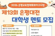 한민일보 서울포커스 임광현 기자 | 서울 은평구는 은평구진로직업체험지원센터 주관으로 진행되는 진로·진학 지원사업 ‘제13회 은평대전’에 참여할 대학생 멘토를 모집한다고 밝혔다. ‘은평대전’은 ‘은근히 평범한 대학생들의 전공 이야기’의 줄임말로, 대학생 멘토가 자신의 전공 선택 과정과 대학 생활, 진로 경험을 청소년 눈높이에 맞춰 전달하는 프로그램이다. 2014년 시작해 올해로 13년째를 맞았다. 프로그램은 ▲중·고등학교 방문 전공강연 ▲전공 체험 활동 ▲소그룹 전공 상담 ▲전공박람회 등으로 구성돼, 청소년에게는 진로 탐색 기회를, 멘토에게는 교육·소통 역량을 키울 수 있는 경험을 제공한다. 전공 멘토링에 관심 있는 대학생·대학원생(올해 신입생 포함)은 누구나 지원할 수 있으며, 은평구 출신 또는 거주자는 우대 선발한다. 멘토 모집 기간은 다음달 26일까지이며, 신청은 은평구진로직업체험지원센터 누리집 또는 홍보물 속 큐알(QR)코드를 통해 신청서를 내려받아 전자우편으로 제출하면 된다. 이와 함께 대학생 멘토기획단 ‘프리지아’ 8기도 내달 2일까지 모집한다. 프리지아는 은평대전 운영 전반을