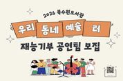 한민일보 서울포커스 진광성 기자 | 북수원·대추골·일월도서관은 시민 참여 문화공연 ‘우리동네 예술 터’에 참여할 재능기부 공연팀을 4월 30일까지 모집한다. 모집 대상은 수원시 예술 동아리와 단체, 예술인으로 개인과 단체 모두 신청할 수 있다. 모집 분야는 ▲음악 ▲무용 ▲연극 등 다양한 장르의 공연이며, 지역 주민과 함께 나눌 수 있는 재능기부 형태의 공연이어야 한다. 정치적·종교적·영리 목적의 공연은 제외한다. 선정된 공연팀은 5월부터 12월까지 북수원·대추골·일월도서관 강당 등에서 공연할 수 있으며, 도서관은 공연 공간을 제공한다. 수원시 관계자는 “이번 사업은 이웃의 재능을 나누며 도서관을 소통의 공간으로 만드는 데 의미가 있다”며 “지역 예술인에게는 무대를, 시민에게는 문화 향유 기회를 제공하는 만큼 많은 참여를 바란다”고 말했다.