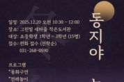한민일보 서울포커스 진광성 기자 | 수원시 장안구 정자3동 그린빌새마을문고는 동지를 맞아 오는 20일 전통문화 등 다양한 프로그램을 체험할 수 있는 ‘동지야 놀자’ 행사를 개최한다고 밝혔다. 이번 행사는 오는 20일 오전 10시 30분부터 12시까지 도서관에서 진행되며, △동화구연 △작은음악회 △전래놀이 △팥죽나눔 등 다양한 프로그램이 마련됐다. 박혜경 그린빌새마을문고회장은 “이번 행사를 통해 우리 고유의 세시풍속을 자연스럽게 익히고 따뜻한 겨울 정을 느낄 수 있길 바란다”며 “앞으로도 지역 주민과 함께하는 작은도서관이 될 수 있도록 노력하겠다”고 말했다.