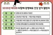한민일보 서울포커스 임광현 기자 | 광명시는 시민들의 건강한 생활습관 형성과 걷기 문화 확산을 위해 ‘제13회 다함께 광명해요 건강 걷기 챌린지’를 진행한다. 이번 챌린지는 오는 11월 1일부터 15일까지 15일간 열리며, 광명시민과 광명시에 소재한 직장인이면 누구나 참여할 수 있다. 참가자는 기간 동안 총 10만 보를 걸으면 되며, 1일 최대 1만 보까지만 인정된다. 참여 방법은 간단하다. 10월 29일부터 워크온(WalkOn) 앱을 설치하고 광명시 공식 커뮤니티에 가입한 뒤 ‘제13회 건강 걷기 챌린지 참여하기’를 눌러 걷기를 시작하면 된다. 단, 목표 걸음을 달성한 시민은 ‘응모하기’ 버튼을 눌러 참여를 완료하면 된다. 누적 걸음 수 목표를 달성한 참여자 중 추첨으로 100명에게 모바일 문화상품권 5천 원권 1매를 지급한다. 당첨자 발표와 상품 지급은 11월 17일부터 11월 21일까지 진행할 예정이다. 나기효 건강위생과장은 “매회 많은 시민이 참여하는 ‘다함께 광명해요 건강 걷기 챌린지’는 일상 속 건강한 습관을 형성할 좋은 기회다”며 “시민들이 걷기를 통해 건강도 챙기고, 작은