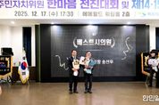 한민일보 서울포커스 임광현 기자 | 목포시의회 송선우(산정·대성·죽교·북항동) 관광경제위원장이 17일 에메랄드 웨딩홀 2층에서 열린 제8회 목포시 주민자치위원 한마음 전진대회에서 ‘목포시 주민자치위원회 베스트 시의원상’을 수상했다. 이 상은 목포시 주민자치위원장협의회가 수여한 것으로, 지역 주민과의 소통을 바탕으로 한 헌신적인 의정활동과 주민자치 발전에 기여한 공로를 인정해 마련됐다. 해당 상은 이번 회차에 처음 제정돼 송선우 위원장이 초대 수상자의 영예를 안았다. 송 위원장은 평소 탁월한 소통 능력을 바탕으로 주민들의 다양한 의견을 의정활동에 적극 반영해 왔으며, 특히 지역 현안 해결 과정에서 보여준 진정성과 열정으로 주민자치의 모범을 제시했다는 공로를 인정 받았다. 또한 주민 복지 향상과 지역 발전을 위한 실질적인 정책 추진에 힘써 왔다는 점에서 높은 평가를 받았다. 송선우 위원장은 수상 소감을 통해 “이 상은 개인이 아닌, 현장에서 함께 고민하고 노력해 온 주민자치위원 여러분과 시민들께서 주신 상이라고 생각한다”며 “앞으로도 주민의 목소리에 더욱 귀 기울이며, 주민자치가 지역 발전