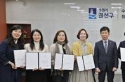 한민일보 서울포커스 진광성 기자 | 수원시 권선구 권선2동 주민자치회는 지난 30일 수원도시재단(권선구 서둔동)에서 마을리빙랩 사업 협약식을 진행했다. 이번 협약은 마을공동체 활성화와 주민자치 역량 강화를 목표로 추진되며, 권선2동 주민자치회는 관내 메타세콰이아 둘레길(보성유원아파트~권선고)에 로고젝터(이미지, 문구 등을 바닥에 비추는 조명장치)를 설치해 언제나 안심하고 다닐 수 있는 지역 명소로 만드는 사업을 진행하기로 확정했다. 이날 협약식에는 권선2동 주민자치회 임원, 수원도시재단 주요 관계자 등이 참석해 상호협력을 다짐했다. 협약에 따라 사업은 올해 9월 30일까지 진행되며, △주민참여형 사업 운영 △맞춤형 모니터링 △성과 공유와 확산에 힘을 모으기로 했다. 김철환 권선2동 주민자치회장은 “마을리빙랩 사업을 통해 주민들이 주인이 되어 지역 문제를 직접 해결할 수 있는 기반이 마련됐다”라며, “수원도시재단과의 긴밀한 협력을 바탕으로 진정한 주민자치와 지역 발전을 이루어가겠다”라고 말했다.