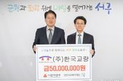 한민일보 서울포커스 김용택 기자 | ㈜한국교량은 인천서구복지재단에 지역 내 어려운 이웃을 위해 5천만 원을 지정기탁했다. ㈜한국교량은 교량 및 구조물 분야에서 기술력을 인정받고 있는 기업으로 지속적인 사회공헌 활동과 나눔 실천을 통해 지역사회와의 동반 성장을 추구하고 있다. 그동안 다양한 기부 활동과 사회 참여 프로그램을 통해 기업의 사회적 가치를 실현해 왔으며 앞으로도 지역과 함께하는 책임 있는 기업의 역할을 이어갈 계획이다. ㈜한국교량 박무수 대표는 “기업은 지역사회와 함께 성장해야 한다는 신념을 가지고 있다. 작은 정성이지만 도움이 절실한 이웃들에게 실질적인 힘이 되기를 바라는 마음으로 기탁을 결정했다”라며, “앞으로도 (주)한국교량은 지속적인 사회공헌 활동을 통해 지역사회와 상생하고 기업의 사회적 책임을 다하는 데 최선을 다하겠다”라고 밝혔다. 강범석 구청장은 “지역사회를 위해 기탁해주신 소중한 성금은 도움이 필요한 주민들에게 투명하고 공정하게 전달될 수 있도록 최선을 다하겠다”라며, “민간의 지속적인 관심과 참여가 지역 복지 수준을 한 단계 끌어올리는 데 큰 힘이 된다”라고 말했다.
