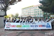 한민일보 서울포커스 임경복 기자 | 울산광역시교육청은 6일 오전 8시에 울주군 울주명지초등학교 앞 어린이보호구역에서 ‘민·관·경이 함께하는 등굣길 교통안전 홍보 활동(캠페인)’을 펼쳤다. 이번 홍보 활동은 지역사회 협력으로 어린이보호구역 내 교통사고를 예방하고, 학생이 안심하고 학교에 다닐 수 있는 교통안전 문화를 확산하고자 마련됐다. 이날 행사에는 천창수 교육감을 비롯해 김종훈 울산광역시의회 의원, 울산시청, 울주군청, 울산울주경찰서, 강남교육지원청 관계자와 울주명지초등학교 학생과 교직원 등 50여 명이 함께했다. 참여자들은 어깨띠를 두르고 학교 정문에서 출발해 인근 횡단보도와 아파트 단지 주변을 돌며 교통안전 홍보 활동을 벌였다. 무인단속카메라, 신호기, 보도 안전울타리 등 보호구역 내 안전시설을 점검하고, 등굣길 학생들에게 교통안전 홍보 스티커가 부착된 구급함 밴드 세트와 교통안전 안내문을 나눠줬다. 현장에서는 학생들에게 ‘어린이 안전 수칙 일이삼사(일단 멈춤, 이쪽저쪽 살피기, 삼 초 동안 주의, 사고 예방)’ 등의 보행 수칙을 알리고, 시민들에게는 ‘안전속도 5030’, ‘어린