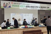 한민일보 서울포커스 임경복 기자 | 군포산업진흥원은 지난 6일 컨벤션홀에서 군포시 산본보건지소의 '찾아가는 심폐소생술 교육'과 연계해 임직원을 대상으로 심폐소생술(CPR) 및 응급처치 교육을 실시했다. 이번 교육은 심폐소생술(CPR) 이론 및 실습을 비롯해 자동심장충격기(AED) 사용법, 응급처치 요령 등 실제 상황을 가정한 체험 중심 프로그램으로 진행됐다. 특히 2026년부터 체육시설 운영에 따라 다양한 연령층의 이용객이 증가하여 임직원의 응급상황 대응 역량을 강화하고 안전한 시설 환경을 조성하고자 이번 교육을 마련했다. 이번 상반기 교육은 임직원을 대상으로 우선 실시했으며 하반기에는 입주기업 및 체육시설 이용객 등으로 참여 대상을 확대해 운영할 계획이다. 유병직 원장은 "지역 보건소와의 협업을 통해 보다 전문적이고 체계적인 교육을 제공할 수 있었다"며 “앞으로도 실효성 있는 안전교육을 지속 확대해 안전한 근무환경과 이용환경 조성에 힘쓰겠다"고 밝혔다.