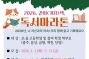 한민일보 서울포커스 임경복 기자 | 충청북도교육청 직속기관 중원교육문화원은 언제나 책봄 정책을 활성화 하기 위해 2월 3일부터 3월 13일까지 북부권 초‧중‧고등학생과 학부모를 대상으로 '2026년 같이(가치)책 독서마라톤' 참여자를 모집한다. 중원교육문화원은 3월 말 발대식을 시작으로 오는 12월까지 독서마라톤을 본격 운영할 계획이다. '2026년 같이(가치)책 독서마라톤'은 학생들이 매월 읽기와 기록, 성찰 활동을 반복하며 꾸준한 독서 습관을 기를 수 있도록 운영되는 프로그램이다. 참가자들은 다채움 플랫폼 ‘채움책방’을 활용해 시간과 장소에 관계없이 독서 활동에 참여할 수 있으며, 누적 독서량에 따라 12월에 구간별 완주증서와 기념품을 받게 된다. 참여 기준은 매월 1편 이상, 총 8회의 독후감상문을 업로드하는 것으로, 학년별 독후감상문 서식과 글자 수 기준에 따라 독서 권수가 인정된다. 독서 완주구간은 ▲소크라테스(8~16권) ▲플라톤(17~34권) ▲아리스토텔레스(35권 이상)으로 구분된다. 참여를 희망하는 학생은 중원교육문화원 누리집에서 신청할 수 있으며, 기타 문