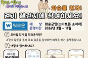 한민일보 서울포커스 박용남 기자 | 화순군은 27일 군민의 일상 속 걷기 실천을 유도하고 걷기 문화 확산을 위해 오는 3월부터 11월까지 모바일 걷기 앱 ‘워크온’을 활용한 군민 걷기 챌린지를 운영한다고 밝혔다. 이번 챌린지는 화순군민이면 누구나 참여할 수 있으며, 참여는 ▲워크온 앱 설치 ▲화순군 공식 커뮤니티 가입 ▲챌린지 화면에서 ‘참여하기’를 선택한 후 스마트폰을 소지하고 걸으면 된다. 다만, 참여 지역이 화순군으로 제한되어 있어 휴대폰 위치 설정을 반드시 활성화한 후 진행해야 한다. 화순군은 9개월간 걷기 챌린지를 운영할 계획이며, 1차 챌린지는 3월 6일부터 25일까지 20일간 진행된다. 목표는 15만 보 달성으로, 목표를 달성한 군민 90명에게는 추첨을 통해 모바일 상품권(5천 원권)을 지급할 예정이다. 박미라 보건소장은 “다양한 걷기 챌린지를 통해 군민들이 일상에서 자연스럽게 걷기 습관을 기를 수 있도록 돕겠다”라며, “걷기 실천을 통해 걷기 좋은 동네, 건강한 화순을 만드는 데 군민 여러분의 많은 참여들 부탁드린다”라고 말했다.