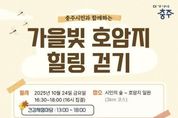 한민일보 서울포커스 김다남 기자 | 충주시는 걷기 좋은 가을을 맞아 오는 24일 시민의 숲과 호암지 일대에서 ‘가을빛 호암지 힐링 걷기’를 개최한다고 밝혔다. 이번 행사는 깊어가는 가을의 정취 속에서 시민들이 함께 걸으며 건강한 생활습관을 실천하고, 다양한 건강체험 프로그램을 통해 스스로 건강 상태를 확인할 수 있도록 마련됐다. 걷기 행사는 오후 4시 함지길(충주종합운동장 보조경기장 인근)에서 집결해 간단한 스트레칭 후 호암지 일부 구간을 걷고 오는 약 3km 코스로 진행된다. 코스 중간에는 체크포인트 이벤트와 버스킹 공연이 함께 마련돼 재미와 활력을 더하며 누구나 부담 없이 참여할 수 있는 프로그램으로 구성됐다. 본행사에 앞서 오후 1시부터는 ‘건강체험부스’가 운영된다. 이곳에서는 △혈압·혈당·체성분 검사 등 기본 건강 측정 △금연·절주·구강건강 등 건강생활실천 홍보 △치매 예방 캠페인 △풍선아트·양말목공예 등 다양한 참여형 프로그램이 마련돼 온 가족이 함께 즐길 수 있는 체험의 장이 될 전망이다. 특히 올해는‘보행측정장비’를 새롭게 도입해 참가자들의 보행 패턴과 균형 상