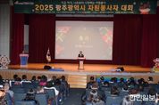 한민일보 서울포커스 임경복 기자 | 광주광역시는 ‘세계 자원봉사자의 날’(12월5일)을 기념해 11일 시청 대회의실에서 지역사회 곳곳에서 헌신해 온 자원봉사자들을 격려하는 ‘2025 광주광역시 자원봉사자대회’를 개최했다. 이날 행사에는 강기정 시장, 신수정 시의회 의장과 시의원을 비롯해 자원봉사자 600여 명이 참석했다. 행사는 식전 공연을 시작으로, 자원봉사활동 홍보영상 상영, ‘2026 세계자원봉사자의 해’ 기념 퍼포먼스, 정부 포상 및 시장·의장상 시상, 영예인증서 전달 등의 순으로 진행됐다. 우수 자원봉사자 표창에서는 강대석 재난대응봉사회 전국협의회 부회장이 국민포장을 받았다. 국무총리 표창은 문순자 서구자원봉사센터 광천동캠프장, 이영자 동구자원봉사센터 동명동캠프장, 정정례 나누미봉사단 회장, 최정주 광주지방검찰청 검찰수사관, 홍애순 전남대학교병원봉사단 회장, ㈔솔잎쉼터가 수상했다. 행정안전부 장관 표창은 서광순 서구자원봉사센터 교육강사, 양복순 대한적십자사 광주전남지사 봉사원, 조복순 진월동 7979봉사단장이 받았다. 또 광주시장상 19명, 광주시의회 의장상 6명,