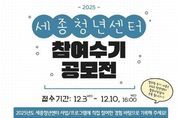 한민일보 서울포커스 곽동근 기자 | 세종일자리경제진흥원이 운영하는 세종청년센터가 센터 사업 및 프로그램 참여자들의 경험과 이야기를 담기 위한 ‘2025년 세종청년센터 참여 수기 공모전’을 개최한다. 이번 공모전은 센터 사업 및 프로그램에 참여한 청년들의 다양한 사례를 수집하고, 현장에서 느낀 진솔한 경험담을 통해 청년들의 참여 의미를 더욱 널리 알리기 위해 마련됐다. 공모 분야는 총 3개 유형이다. ▲유형1은 세종청년센터 사업 및 프로그램 참여 청년, ▲유형2는 청년도전지원사업 참여 청년, ▲유형3은 청년성장프로젝트 참여 청년을 대상으로 하며, 1인당 1편만 응모할 수 있다. 참여 방식은 자유주제로, 2025년도 센터 사업 및 프로그램 참여 경험을 바탕으로 A4 1~4매(500자 이상)의 한글 파일 형식의 수기를 작성해 제출하면 된다. 공모 접수는 10일 16시까지이며, 세종청년센터 홈페이지에서 신청서를 내려받아 수기와 함께 제출하면 된다. 센터 사업에 참여한 세종시 청년이라면 누구나 지원할 수 있다. 참여자 모두에게는 세종청년마일리지 ‘세마일’* 20,000점이 적립되며, 부문별 ▲최