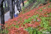 한민일보 서울포커스 기자 | 울산 남구 선암호수공원이 가을을 붉게 수놓은 꽃무릇으로 물들고 있다. 남구에 따르면, 호수 산책로 4km와 축구장 옆 테마쉼터에 조성된 49만여 본의 꽃무릇은 9월 20일부터 개화해 10월 초까지 이어지며, 특히 9월 마지막 주말 절정을 맞아 가장 화려한 풍경을 만날 수 있다. 개화 후 약 열흘간 이어지는 붉은 물결은 시민들의 일상에 특별한 가을의 감동을 전한다. 남구는 2019년부터 꽃무릇을 심기 시작해 꾸준히 확장해 왔고 올해 '선암호수공원 명품둘레길 조성 사업'을 통해 약 2만 5천여 본의 꽃무릇을 추가로 심어 총 51만 5천여 본 규모의 대규모 군락지로 거듭나도록 할 예정이다. 아울러 수선화, 왜성조팝나무 등 다양한 초화류와 수목을 심고 휴게공간도 조성해 시민들이 풍성한 볼거리와 쾌적한 휴식을 즐길 수 있도록 할 계획이다. 꽃무릇은 수선화과에 속하는 여러해살이 구근식물로 본래 이름은 돌 틈에서 나오는 마늘종 모양을 닮아 '석산화(石蒜花)'라 불리며 특히 잎이 나기 전 꽃이 먼저 피는 독특한 특성으로 인해 '이루지 못할 사랑'이라는 꽃말이 유래했다.