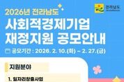한민일보 서울포커스 박정민 기자 | 전라남도는 오는 27일까지 사회적경제기업의 지속적이고 안정적인 성장과 자립을 지원하기 위한 2026년 사회적경제기업 재정지원사업 공모를 추진한다. 이번 공모는 ▲일자리창출 지원 ▲사업개발비 지원 ▲시설장비 지원 ▲시군 지역 특화사업 지원, 4개 분야로 나눠 530여 기업에 총 49억 원을 지원할 예정이다. 지난해(27억 원)보다 대폭 확대된 규모다. 특히 올해는 기업 선호도가 높은 인건비에 국비 지원이 재개되고, 도 자체 지원도 확대해 기업의 고용 부담을 완화하고 안정적 일자리 창출을 적극 지원할 방침이다. 일자리창출사업은 진입 초기 사회적기업을 대상으로 취약계층 고용 1명당 월 50만~90만 원을 최대 3년간 인건비로 지원하며, 도 자체 지원사업인 전남형 일자리창출사업은 일반인력과 전문인력까지 추가로 지원한다. 사업개발비 사업은 사회적경제기업의 제품 품질개선, 디자인과 시제품 제작, 홍보비 등 최대 1억 원을 지원한다. 시설장비 사업은 기업이 신규 시설장비를 구입하거나 노후 시설장비 교체 시 최대 2천만 원을 지원한다. 이외