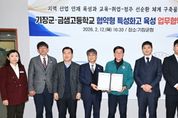 한민일보 서울포커스 임광현 기자 | 기장군은 최근 금샘고등학교(교장 오상흔)와 ‘협약형 특성화고등학교 육성을 위한 업무협약’을 체결했다고 19일 밝혔다. 이번 협약은 전력반도체 협약형 특성화고등학교 선정을 위해 준비 중인 금샘고등학교를 지원하고, 기장군의 미래 먹거리인 전력반도체 특화단지에 필요한 맞춤형 인재를 양성하기 위해 협력 체계를 구축하고자 마련됐다. 이날 협약식에는 정종복 기장군수와 오상흔 금샘고등학교 교장을 비롯해 금샘고등학교 학부모회, 기장군 소재 기업인 ㈜효성전기와 ㈜SCV 관계자 등이 참석했다. 기장군과 금샘고등학교는 상호 신뢰를 바탕으로 2026년 3월부터 5년간 지역 기반 산업 인재 육성을 위해 실질적인 협력을 추진하기로 뜻을 모았다. 주요 협약 내용은 ▲지역 기반 산업 인재 육성을 위한 지자체-학교 간 거버넌스 구축 ▲교육 비전 달성을 위한 행정적 지원 및 대외 홍보 ▲특성화 프로그램 운영을 위한 행정·재정적 지원 검토 등이다. 정종복 기장군수는 “금샘고등학교 재학생 중 기장군 거주 학생 비율이 약 22%에 달할 만큼 우리 군과 밀접한 관계가 있다”라며, “우리