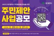 한민일보 서울포커스 김봉순 기자 | 대구광역시는 시민의 목소리를 시정에 직접 반영하기 위해 2월 20일부터 3월 27일까지 36일간 ‘2027년도 예산편성을 위한 주민제안사업’을 공모한다. 이번 공모 규모는 총 140억 원 규모로, 공모 분야는 ▲시정 참여형(70억 원) ▲구·군 참여형(40억 원) ▲읍·면·동 참여형(30억 원) 등 총 3개 부문으로 나뉜다. 대구 시민은 물론 대구 소재 직장인과 학생이라면 누구나 참여할 수 있다. 다만, 대구시와 구·군 공무원 및 산하 출연·투자기관에 종사하는 사람은 제외된다. 제안은 주민참여예산 누리집과 이메일, 팩스, 우편 및 방문 접수를 통해 가능하다. 대구시는 참여자 가운데 추첨을 통해 모바일 상품권을 지급하며, 향후 투표를 통해 우수사업으로 선정된 제안자에게는 대구광역시장 표창을 수여할 계획이다. 접수된 사업은 사업부서 검토와 주민참여예산위원회의 숙의·심사, 주민투표 및 총회 승인을 거쳐 선정되며, 시의회 예산심의·의결을 통해 2027년 주민참여예산 사업으로 최종 확정된다. 한편, 대구시는 지난해 주민제안사업 공모를 통해 ▲불