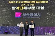 한민일보 서울포커스 임광현 기자 | 부산시는 오늘(30일) 오후 2시 청주오스코에서 열린 '2025 전국 지방자치단체 일자리대상' 시상식에서 '공시제 부문' 광역단체 대상(국무총리상)과 '우수사업 부문' 우수상(장관상)을 각각 수상했다고 밝혔다. '전국 지방자치단체 일자리대상'은 고용노동부가 전국 지자체의 일자리 정책과 성과를 종합 평가해 우수 지자체를 선정·포상하는 권위 있는 상으로, 지자체 일자리 정책의 성과를 보여주는 대표적 지표로 평가받는다. [공시제 부문] 시는 어려운 경제 여건 속에서도 적극적인 재정 지원 일자리 사업을 추진해 지역특화․신산업 중심의 일자리 창출, 미래인재 양성, 대상별 맞춤형 일자리 지원 및 취약 노동자 권익 보호까지 종합적 성과를 이룬 것을 인정받아 광역단체 대상을 수상하는 쾌거를 이루었다. 우선 ▲수소·조선·블루푸드테크 등 신성장 산업에서 1천470명의 일자리를 창출하고 ▲부산디지털혁신아카데미(BDIA)를 통해 4천482명의 정보통신기술(ICT) 인재를 양성해 2천431명을 취업으로 연계했다. 한편 2024년 한 해 동안 민간기업 투자유치 6조 원을 달성해 지역경제에