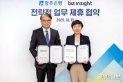 한민일보 서울포커스 임철현 기자 | 광주은행은 15일, 라이프케어 전문기업 비즈인사이트(대표 김상수)와 전략적 업무 제휴 협약을 체결했다고 밝혔다. 이번 협약은 양사가 긴밀한 협력 체계를 바탕으로 금융과 라이프케어를 결합한 전용 상품 및 서비스 개발과 공동 마케팅 추진 등 다각적인 제휴를 통해 새로운 디지털 금융 서비스를 선보이기 위한 목적이다. 이날 협약식에는 광주은행 변미경 디지털본부 부행장과 비즈인사이트 김상수 대표가 참석했으며, 변화하는 디지털 환경 속에서 양사가 상호 시너지를 창출하고, 고객 중심의 혁신 서비스를 지속적으로 확대해 나가겠다는 뜻을 모았다. 특히, 양사는 이번 제휴를 통해 전용 상품 및 서비스 개발, 공동 마케팅 등 차별화된 협력 방안을 추진하여, 디지털 전환이 가속화되는 환경 속에서 고객 만족도를 높이는데 주력한다는 방침이다. 한편, 광주은행과 비즈인사이트는 지난 9월 25일부터 ‘와이즈한 웰니스 라이프의 시작’ 이벤트를 진행 중이다. 해당 이벤트는 광주은행 계좌로 급여 또는 연금을 신규 수령하거나, 기존 타행에서 광주은행으로 입금 계좌를 변경한 고객을 대상으로 진행되며,