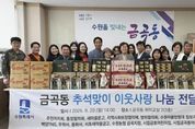 한민일보 서울포커스 진광성 기자 | 수원시 권선구 금곡동 행정복지센터는 지난 29일, 추석 명절을 맞이하여 ‘추석 명절 이웃사랑 나눔 전달식’을 개최했다. 이번 전달식에는 △금곡동 주민자치회 △통장협의회 △지역사회보장협의체 △새마을문고 △방위협의회 △수원자율방범대 칠보지대 △무학사 △용화사 △서호새마을금고 △수원농협 금곡지점 △시립금곡동어린이집 △시립금호어린이집 △백양TNS 등 지역 내 다양한 단체 및 유관기관들이 참여해 따뜻한 명절 분위기를 조성했다. 참석자들은 △백미 △라면 △상품권 △선물세트 등 다채로운 명절 선물을 준비했으며, 이 물품들은 추후 취약계층 주민들에게 전달될 예정이다. 장성임 동장은 “어려운 시기에도 이웃사랑을 실천해 주신 모든 단체와 기관에 깊은 감사를 드리며 이웃과 함께 정과 사랑을 나누는 추석 명절이 되기를 바란다”라고 말했다.