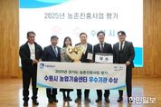 한민일보 서울포커스 진광성 기자 | 수원특례시 농업기술센터가 ‘2025년 경기도 농촌진흥사업 평가’에서 우수 기관으로 선정돼 경기도지사 표창을 받았다. 시상은 26일 열린 시군농업기술센터소장 업무협의회 중 진행됐다. 경기도는 20개 시군 농업기술센터를 대상으로 2025년 농촌진흥사업 추진 실적을 ▲지도정책 ▲기술보급 ▲농촌자원 ▲농촌진흥사업 활성화 등 11개 분야 33개 지표를 기준으로 평가했다. 수원시 농업기술센터는 농업교육과 도시농업을 체계적으로 운영하고, 농업인 맞춤형 기술 지원을 강화한 점에서 높은 평가를 받았다. 또 ▲신규농업인 양성 교육 운영 ▲시민농장·과수공원 등 도시농업 활성화 ▲농업인 단체 육성 ▲신기술 보급 확대 등 다양한 사업을 추진하며 농업인의 편익과 소득 증가에 이바지한 점도 좋은 평가를 받았다. 수원시 관계자는 “이번 수상은 농업인의 삶의 질 향상과 지역 농업 경쟁력 강화를 위한 노력이 인정받은 결과”라며 “앞으로도 변화하는 농업 환경에 대응할 수 있도록 맞춤형 기술 지원과 교육을 지속해서 추진하겠다”고 말했다.