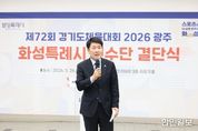 한민일보 서울포커스 진광성 기자 | 화성특례시의회는 26일 화성종합경기타운 3층 라운지홀에서 열린 제72회 경기도체육대회 화성시 선수단 결단식에 참석해 선수단을 격려하고 4연패 달성을 위한 결의를 다졌다. 이날 행사에는 배정수 의장을 비롯해 김종복 문화복지위원장, 송선영·이용운 의원, 화성시체육회 임원과 종목단체 관계자, 선수단 등 약 150여 명이 참석했다. 이날 결단식은 경기도체육대회 출전을 앞둔 선수단의 사기를 높이고 각오를 다지는 자리로 마련됐다. 화성특례시 선수단은 오는 4월 16일부터 18일까지 광주시 일원에서 열리는 제72회 경기도체육대회에 출전한다. 육상, 수영, 축구 등 27개 종목에 참가해 종합우승 4연패에 도전한다. 배정수 의장은 “묵묵히 쌓아온 훈련의 시간과 노력을 믿고 끝까지 당당하게 경기에 임해주시기 바란다”며 “선수 여러분의 땀과 투혼이 화성특례시의 자부심”이라고 말했다. 이어 “화성특례시의회도 선수들이 오직 경기에 집중할 수 있도록 체육 환경 조성과 지원에 최선을 다하겠다”며 “4연패 달성을 진심으로 기원한다”고 덧붙였다. 화성특례시의회는 선수들