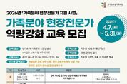 한민일보 서울포커스 김윤이 기자 | 경기도여성가족재단은 4~6월 총 5회에 걸쳐 경기도 내 가족분야 전문상담사 250명을 대상으로 가족분야 현장전문가 역량강화 교육을 실시한다. 이번 교육은 가족분야 상담을 필요로 하는 경기도민에게 보다 전문적이고 다양한 영역의 상담서비스를 제공할 수 있도록, 현장에서 활동하는 상담사의 실천 역량을 강화하기 위해 마련됐다. 최근 가족분야 상담 현장에서 중요성이 커지고 있는 우울·자살 위험, 중독, 은둔·고립, 장애·입양 등 다양한 유형별 특성과 주요 이슈에 대한 이해 및 상담사례 등으로 현장에서 곧바로 적용할 수 있도록 프로그램을 구성했다. 모집대상은 경기도 내 가족분야 전문상담사이며, 교육은 차수별 50명 내외로 총 5차에 걸쳐 운영된다. 신청기간은 4월 7일부터 5월 31일까지이며, 재단 누리집을 통해 차수별로 선착순 모집한다. 김혜순 재단 대표이사는 “이번 역량강화교육은 도내에서 활동하는 가족분야 전문상담사들의 상담 현장 대응력과 전문성 제고를 위해 기획한 것”이라면서 “가족분야 현장전문가들과 함께 할 수 있는 사업을 마련하겠다”고 말했다.