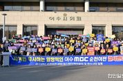 한민일보 서울포커스 임광현 기자 | 여수MBC 순천이전을 저지하기 위한 여수시민들의 외침이 도심 한가운데 울려 퍼졌다. 15일 여수시에 따르면, 이날 오후 3시 여수시와 여수시의회, 시민사회단체로 구성된 ‘여수MBC 순천이전 반대 범시민대책위원회’는 시의회 청사 1층 공감뜨락에서 ‘여수MBC 지키기! 대시민 토론회 및 결의대회’를 가졌다. 이날 대회는 범대위 공동위원장인 여수시장과 시의장, 범대위 회원을 비롯해 시민과 시의원 등 3백여 명이 참석한 가운데, 1부 대시민토론회와 2부 결의대회 순으로 진행됐다. 이들은 결의문에서 “시민 의견을 배제하고 공론화 과정 없이 일방적으로 추진한 여수MBC 순천이전을 즉각 중단하라”며, “이전 계획을 철회하고 공영방송의 책무를 다하라”고 촉구했다. 정기명 시장도 “여수MBC는 지금이라도 시민들께 사죄하고 대화에 나서라”며, “대화를 통해 시민적 합의만 이뤄진다면 시는 어떠한 제안도 수용할 준비가 되어있는 만큼 이 위기를 함께 헤쳐 나가자”고 밝혔다. 한편, 참석자들은 행사를 통해 결의를 다지고, 여수시의회를 출발해 KB국민은행과 (구)송원백화점, 해