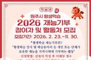 한민일보 서울포커스 임경복 기자 | 원주시 평생교육원 학습관은 오는 11월 말까지 2026년 원주시 평생학습 재능기부 참여자 및 활동처를 수시 모집한다. 재능기부 참여자는 평생교육 강사, 학습동아리 등 자신의 재능을 무보수로 나눠주고 싶은 개인 또는 팀이다. 재능기부 활동처는 프로그램 참여를 희망하는 관내 경로당과 요양원, 복지관 등 관람 인원이 15명 이상인 곳이다. 학습관은 오는 4월부터 11월까지 매달 희망 활동처 2곳과 재능기부 팀 1∼3곳을 연계해 프로그램을 운영할 계획이다. 모집 기간은 2월 23일부터 11월 30일까지다. 학습관 또는 원주시 통합예약플랫폼 홈페이지에서 서식을 내려받아 작성한 후, 이메일 제출하면 신청할 수 있다. 자세한 사항은 학습관 평생교육팀으로 문의하면 된다. 윤석재 학습관장은 “평생학습으로 배운 재능을 지역의 소외계층과 함께 나눔으로써 재능기부 문화를 활성화할 수 있도록 많은 관심과 참여를 부탁드린다”라고 말했다.