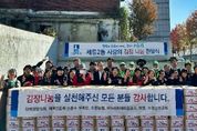 한민일보 서울포커스 김서윤 기자 | 남양주시의회는 12일 금곡동에 위치한 남양주시 새마을회관 앞에서 진행된 ‘사랑의 김장 나누기 행사’에 참석해 따뜻한 이웃사랑 실천에 나섰다. 남양주시새마을회(지회장 이덕우)에서 주최한 이날 행사는 지역 내 어려운 이웃들이 따뜻한 겨울을 날 수 있도록 정성껏 담근 김치를 전달하는 행사로 매년 개최하고 있으며, 이날 담근 4,000포기의 김장김치는 각 읍면동 소외계층 700여 가구에 전달될 예정이다. 행사에는 조성대 의장을 비롯한 시의원들과 주광덕 남양주시장, 각 읍면동장, 새마을 부녀회 및 새마을지도자 등 250여명이 참석했으며, 조성대 의장을 비롯한 시의원들은 김장 나누기 행사에 동참한 새마을 봉사자들을 격려한 뒤, 김장김치를 함께 담그며 함께 일손을 보탰다. 조성대 의장은 “매년 김장 나눔 행사를 통해 이웃사랑을 실천해주고 계신 새마을회 회원들께 감사드리며, 사랑과 정성이 가득 담긴 김치가 지역의 어려운 이웃들이 따뜻한 겨울을 보내는 데 보탬이 되길 바란다”고 하며, “남양주시의회는 단 한 분의 시민도 소외되지 않고 모두가 행복한 남양주시를 만들기 위해 도움의 손길이 필요한