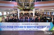 한민일보 서울포커스 기자 | 한국자유총연맹 울산남구지회(회장 이상득)는 28일 고래바다여행선에서 회원 250여 명이 참석한 가운데 한마음 전진대회를 개최했다고 밝혔다. 이날 행사는 유공자 표창과 결의문 낭독, 단합대회 등 다양한 프로그램으로 진행됐으며 특히 작년에 이어 전진대회를 맞아 회원들이 마음을 모아 고향사랑 기부금 1,000만 원을 전달하는 특별한 시간도 마련됐다. 이상득 지회장은 "한결같은 열정으로 봉사에 임해주신 회원분들 덕분에 올 한해도 큰 도약을 이룰 수 있었다”며 "이번 전진대회를 통해 회원 간 더욱 소통하고 단합하여 앞으로도 지역사회의 발전을 위하여 남구지회가 앞장서겠다”고 전했다.