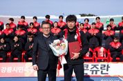 한민일보 서울포커스 최성훈 기자 | FC강릉(재단법인 강릉시민축구단)은 2026시즌을 앞두고 직무대행 체제였던 감독직위에 임다한 감독을 임명하여, 새 시즌을 향한 팀 운영 체제를 완성했다. 구단은 2026년 1월 30일, 임다한 감독 임명식을 개최했다. 이날 FC강릉 이사장인 김홍규 강릉시장이 직접 임명장을 수여하며, 감독 직무대행 체제로 운영되던 팀이 정식 감독 체제로 전환했음을 대외적으로 분명히 했다. 임다한 감독의 선임을 계기로 FC강릉은 2026시즌을 향한 지휘 체계를 명확히 정립하고, 전지훈련을 포함한 시즌 준비에 속도감 있게 돌입할 계획이다. 임명식 직후에는 2026시즌을 대비해 구성이 완료된 선수단(40명: 코치8, 선수단32)의 첫 공식 행사로 단체사진 촬영이 이어졌다. 이번 행사는 완성된 선수단의 현재 모습을 대중에게 처음 선보이는 자리로, 2026시즌 FC강릉의 출발을 상징하는 장면이 될 전망이다. 또한 김홍규 이사장은 전지훈련을 앞둔 선수단에게 격려와 응원의 메시지를 전하며 선전을 당부했고, 선수단 역시 새 시즌을 향한 각오와 결의를 다지는 시간을 가졌다. FC강릉