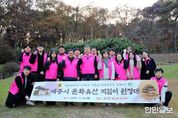 한민일보 서울포커스 김윤이 기자 | 세종도시교통공사는 20일 지역 대표 문화유산의 매력을 보존하고자 봉산동 향나무에서 ‘버스타고 문화유산 지킴이 원정대’ 활동을 진행했다고 밝혔다. 이날 행사에는 세종도시교통공사 임직원과 김광운 세종시의원이 함께 참여해 11번·12번 버스를 이용해 현장을 방문했으며, 천연기념물 321호 봉산동 향나무와 오봉산 등산로 일원에서 보호·보존 활동을 펼쳤다. 봉산동 향나무는 약 400년 수령의 노거수로, 문화적·생물학적 가치가 높아 천연기념물로 지정·보호되고 있다. 몸통이 비틀린 형태로 마치 용을 연상시키며, 사방으로 뻗은 가지가 수평을 이루고 있어 여러 개의 받침대가 이를 지탱하고 있는 독특한 모습을 지닌다. 전해지는 이야기에 따르면 이 향나무는 강화최씨 가문의 최중룡이 부친의 상을 치른 뒤 효심을 기리기 위해 심은 것으로 알려져 있으며, 마을 주민들은 나무가 무성하면 마을에 평화가 찾아오고, 쇠약해지면 불길한 일이 생긴다고 여겨 세심히 돌봐왔다. 김광운 세종시의원은 "조치원 지역의 소중한 문화유산인 봉산동 향나무를 함께 보존하는 뜻깊은 활동에 참여하게 되어 기쁘다"며