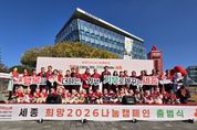 한민일보 서울포커스 김윤이 기자 | 약 두 달간 진행되는 ‘희망2026나눔캠페인’이 본격적인 겨울 나눔의 시작을 알리자 따듯한 이웃사랑을 담은 기부가 이어지고 있다. 세종특별자치시(시장 최민호)는 1일 시청 광장에서 세종사회복지공동모금회와 희망2026나눔캠페인 출범식과 사랑의 온도탑 점등식을 개최했다. 이날 행사에는 최민호 시장과 박상혁 세종사회복지공동모금회장, 임채성 시의회 의장, 구연희 시교육감 권한대행, 개인·법인기부자 등 100여 명이 참석해 나눔문화 확산에 함께했다. 시가 후원하고 세종사회복지공동모금회가 주관하는 희망2026나눔캠페인은 이달 1일부터 내년 1월 31일까지 62일간 진행되며, 지난해와 동일한 20억 4,000만 원을 목표액으로 설정했다. 캠페인은 출범 첫날부터 지역사회 기부자들의 적극적인 참여가 이어지면서 5억 4,000만 원의 기부금을 누적, 사랑의 온도탑 열기를 끌어올렸다. 우선 정휘영 ㈜도암농장 대표와 이규순 비오케이아트센터 대표가 세종시 고액 기부자 모임 아너소사이어티에 신규 가입하면서 5년 내 1억 원의 기부금을 약속했다. 또한, ㈜동원유지가