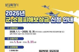 한민일보 서울포커스 진광성 기자 | 화성특례시는 다음 달 5일부터 2월 27일까지 2026년 군 소음피해보상금 지급 신청을 받는다고 29일 밝혔다. 군 소음피해보상금은 ‘군소음보상법’에 따라 국방부에서 지정․고시한 소음대책지역에 주민등록을 하고 실제 거주하는 주민들에게 지급된다. 2026년도 신청 대상은 2025년 1월 1일부터 12월 31일까지 소음대책지역에 주민등록을 하고 실제 거주한 주민이다. 시는 보상금 지급 신청을 위한 안내문과 신청 서식을 소음대책지역에 거주하는 세대에 우편 발송할 예정이다. 안내문의 QR코드를 통해 화성시 군소음 피해보상 홈페이지 또는 정부24에서 모바일 및 온라인 신청을 할 수 있으며, 서식을 작성해 방문 신청도 가능하다. 방문 신청은 화산동 행정복지센터 2층, NSD타워(경기대로 1044) 3층, 양감면 행정복지센터에서 할 수 있으며, 2025년도와 달리 동부출장소 접수처가 NSD타워로 이전돼 운영된다. 군 소음피해보상금 신청 서식 및 지급 절차 등은 화성특례시청 홈페이지에서도 확인할 수 있다. 보상금은 화성시 지역소음대책심의원회를 거쳐 5월 말 지급 결정 통지, 8월 말 개별 지급될 예정이다. 윤순석 군공항대응과장은 “군 소