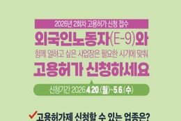 한민일보 서울포커스 임철현 기자 | 고용노동부는 4월 20일부터 5월 6일까지 전국 지방고용노동관서를 통해 2026년도 2회차 외국인노동자(E-9) 신규 고용허가 신청을 받는다고 밝혔다. 2회차 신규 고용허가 규모는 전체 15,774명(제조업 11,275명, 농․축산업 2,382명, 어업 1,485명, 건설업 492명, 서비스업 140명)이며, 업종별 초과수요가 있을 경우 탄력배정분(1만명)을 적극 활용할 예정이다. 이번 2회차부터는 외국인노동자(E-9) 특화훈련 참여 사업장과 외국인노동자 안전리더 운영 사업장에 고용허가제 외국인력 배정기준인 「점수제」에 가점을 부여한다. 외국인노동자(E-9) 고용을 희망하는 사업주는 7일의 내국인 구인노력을 거친 후 지방고용노동관서를 방문하거나 고용24 누리집를 통해서 고용허가를 신청할 수 있다. 신청 결과는 5월 21일에 발표되며, 고용허가서 발급은 제조·광업의 경우 5.22.~5.29., 농축산·어업, 임업, 건설업 및 서비스업은 6.1.~6.8.에 진행될 예정이다.