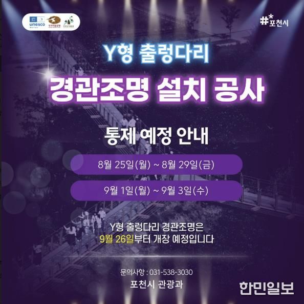 한민일보 서울포커스 심기옥 기자 | 포천시는 오는 25일부터 한탄강 Y형 출렁다리에 경관조명을 설치한다.