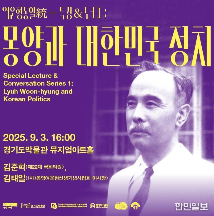 한민일보 서울포커스 김윤이 기자 | 경기문화재단 경기도박물관과 몽양기념관은 광복 80주년 기념 특별전 《여운형: 남북 통일의 길》의 연계 행사로 ‘여운형 통일 특강&토크 Ⅰ: 몽양과 대한민국 정치’를 오는 9월 3일 오후 4시, 경기도박물관 뮤지엄아트홀에서 개최한다.