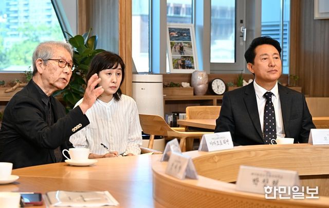 한민일보 서울포커스 국용호 기자 | 오세훈 서울시장은 10일 오전 11시 20분 집무실에서 ‘2024 프리츠커상’을 수상한 일본인 건축가 야마모토 리켄(山本理顕)을 만나 ‘서울시민을 위한 미래 주거공간’에 대한 프레젠테이션을 청취하고 저출생‧고령화 사회 속 공동주택의 역할과 미래에 대해 이야기 나눴다.