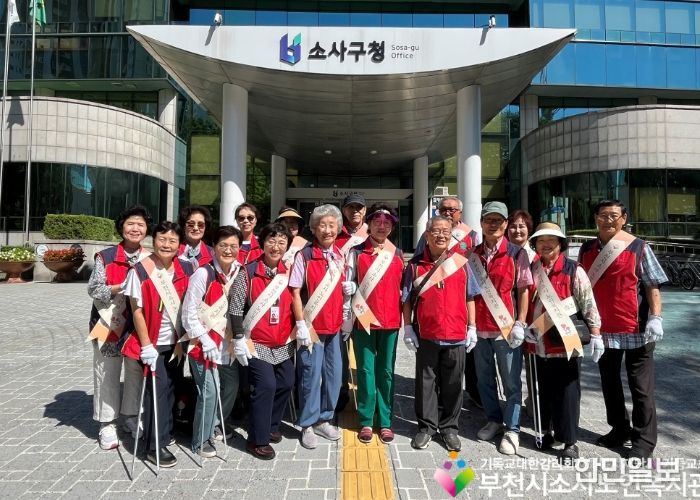 한민일보 서울포커스 김윤이 기자 | 부천시소사노인복지관은 9월 11일 오전, 노인자원봉사단 ‘시민지킴이’ 16명과 함께 복지관이 위치한 소사구청 일대를 시작으로 소사본동 일부 구간까지 환경정화 활동 ‘줍깅’을 실시했다.