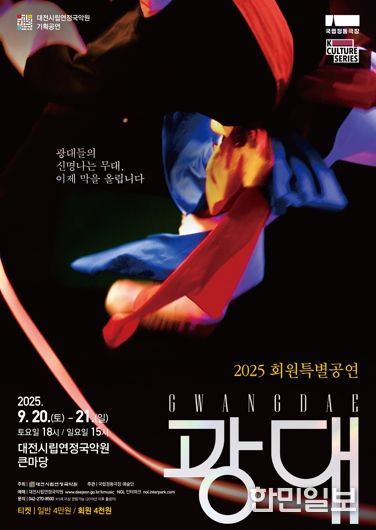 한민일보 서울포커스 유한희 기자 | 대전시립연정국악원은 오는 9월 20일 오후 6시와 21일 오후 3시, 양일간 국악원 큰마당에서 국립정동극장 예술단의 전통연희극 ‘광대’를 국악원 회원을 위한 특별공연으로 선보인다.