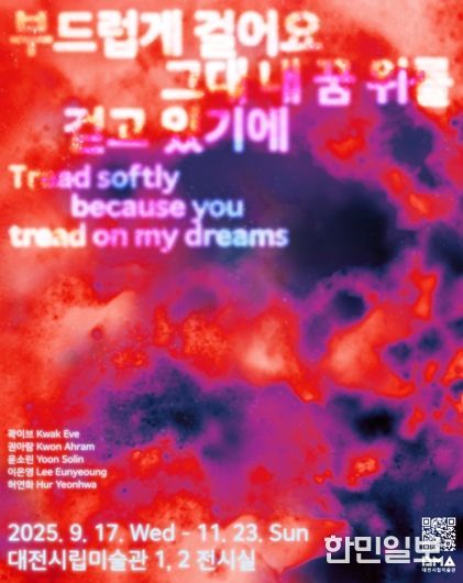 한민일보 서울포커스 유한희 기자 | 대전시립미술관은 오는 9월 17일부터 11월 23일까지 1·2 전시실에서 현대미술기획전 «부드럽게 걸어요, 그대 내 꿈 위를 걷고 있기에»를 개최한다. 이번 전시는 인간과 세계를 바라보는 동시대 작가들의 시선을 통해 공간의 의미와 사유를 탐구하며, 설치·미디어·사진·사운드 작품 등 30여 점을 선보인다.