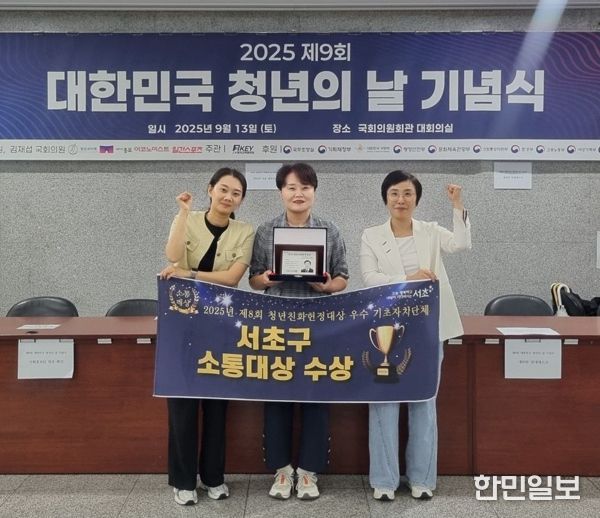 한민일보 서울포커스 곽중희 기자 | 서울 서초구가 13일 국회사무처 소관 사단법인 청년과미래가 주최한 '제8회 청년친화헌정대상' 지방자치단체 부문 ‘소통대상’을 수상했다고 밝혔다.