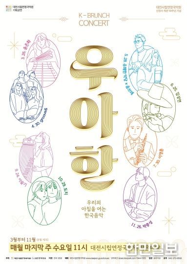 K-브런치콘서트 '우‧아‧한'은 대전국악방송과 공동 기획으로, 우리 지역 전통음악 인프라 확충과 국악의 대중화, 생활화를 목표로 마련된 프로그램이다. 국내외에서 활발히 활동하는 연주자들이 참여해 클래식·재즈 등 다양한 장르와의 경계를 넘나드는 무대를 통해 한국음악의 새로운 가능성을 제시한다.