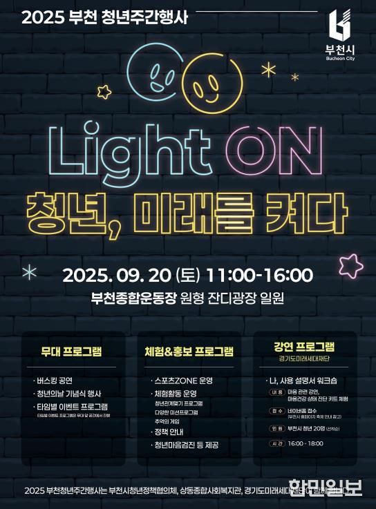 한민일보 서울포커스 김윤이 기자 | 부천시는 청년의 날을 기념해 9월 20일 부천종합운동장 원형 잔디광장에서 ‘2025 부천 청년주간행사’를 연다.