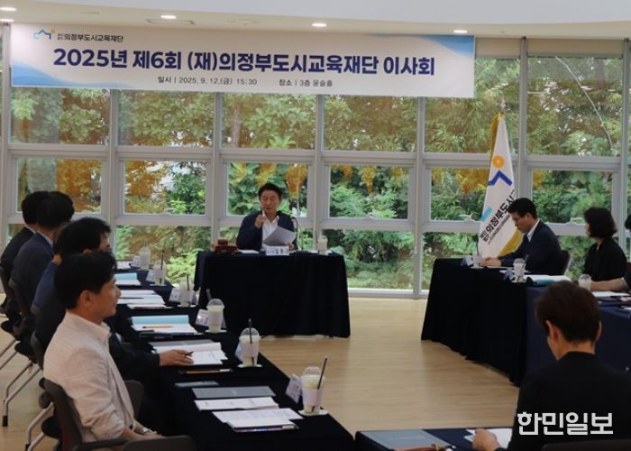 한민일보 서울포커스 심기옥 기자 | (재)의정부도시교육재단은 12일 재단 3층 대강당(윤슬홀)에서 ‘2025년 제6회 이사회’를 개최하여 5건의 안건을 심의 의결했다.