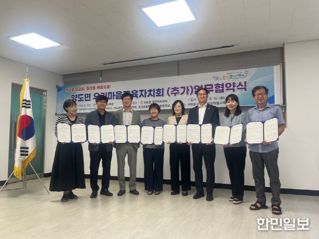 한민일보 서울포커스 유창렬 기자 | 인천광역시교육청은 16일 양도면 우리마을교육자치회 추가 업무협약을 체결했다.