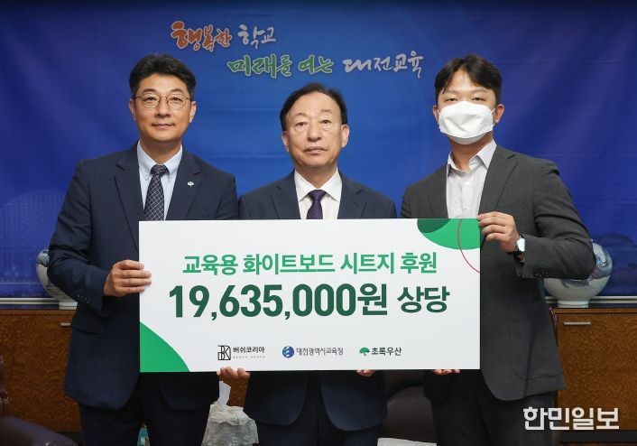 한민일보 서울포커스 유한희 기자 | 대전시교육청은 9월 18일 버쉬코리아의 후원참여 및 초록우산 대전지역본부의 연계로 19,635,000원 상당의 늘봄학교 사용 교육 물품(붙이는 화이트보드 1,050개)을 기탁받았다고 밝혔다.